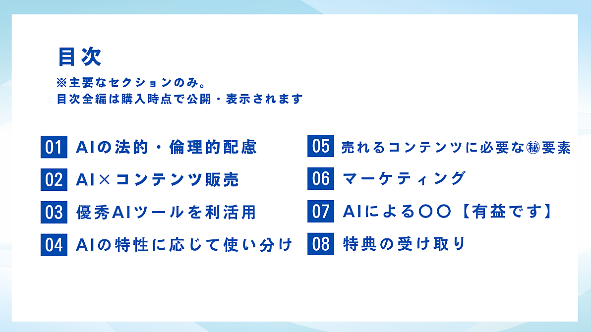 本編で登場する優秀な3つのAIを最大利活用し、コンテンツ販売を成功させましょう◎