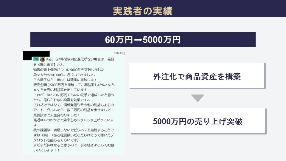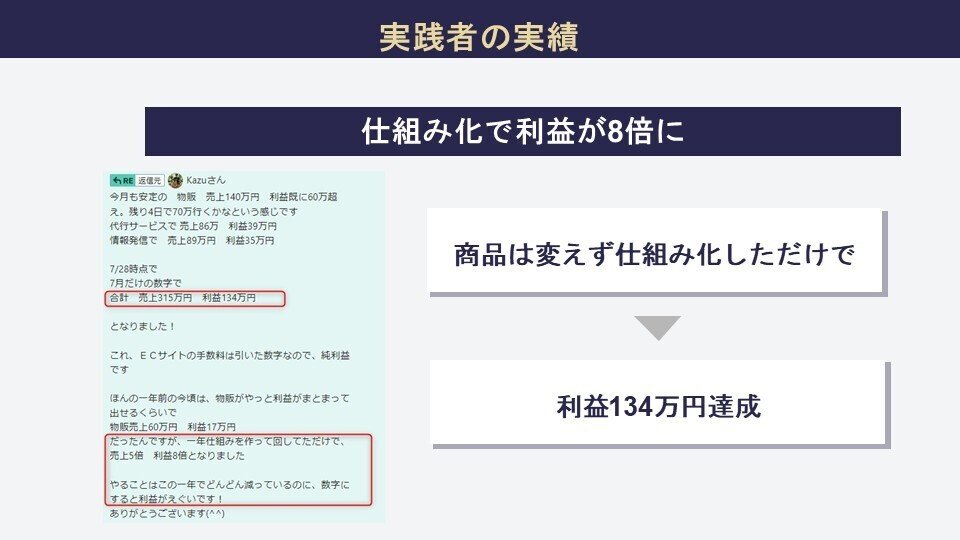 「余った時間で仕入れ点数や出品数を増やし、利益アップできた」